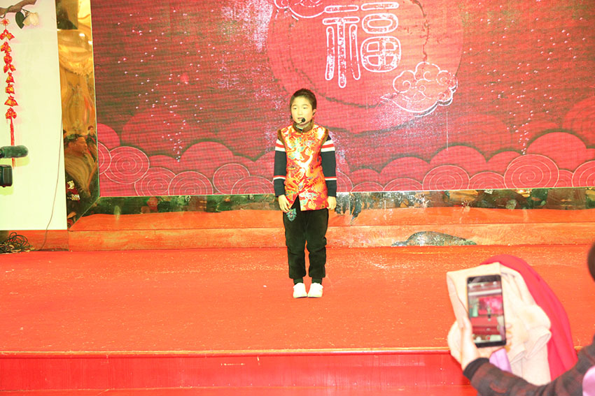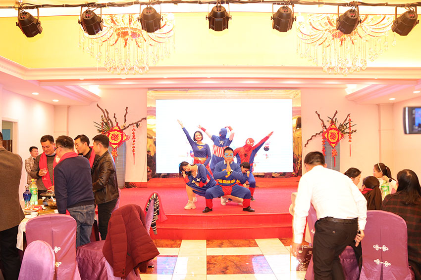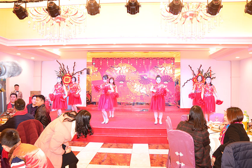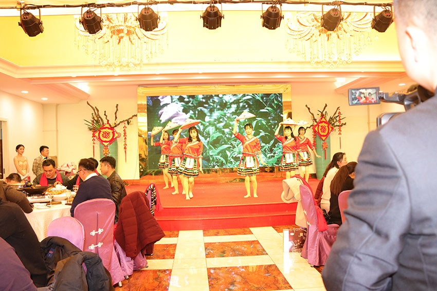 接著,我們邊吃晚宴邊開始公司的節目演出,由泓冠全體美女帶來的一支集體舞蹈《恭喜發財》博得了頭彩,瞬間點燃了全場;廣告部的小王總帶來的一首耳熟能詳的歌曲《闖碼頭》,帶動大家紛紛一同唱和起來,廣告部帶來的幽默風趣的舞蹈《窮開心》,引得場上歡聲笑語不斷,多才多藝的小朋友帶來的薩克斯獨奏《北國之春》,不銹鋼事業部的美女帶來的舞蹈《茶山情歌》,精彩紛呈的才藝表演環節中穿插著“抽獎”的環節,25位幸運兒收獲了自己新年第一份禮物;緊接著由小朋友帶來的一個詩朗誦表演《大拜年》讓大家的燃情再一次高漲。雖然大家并不是專業出生,但大家的敬業程度還是非常讓人欽佩,為了表演好這次節目,他們利用無數個下班時間刻苦練習;