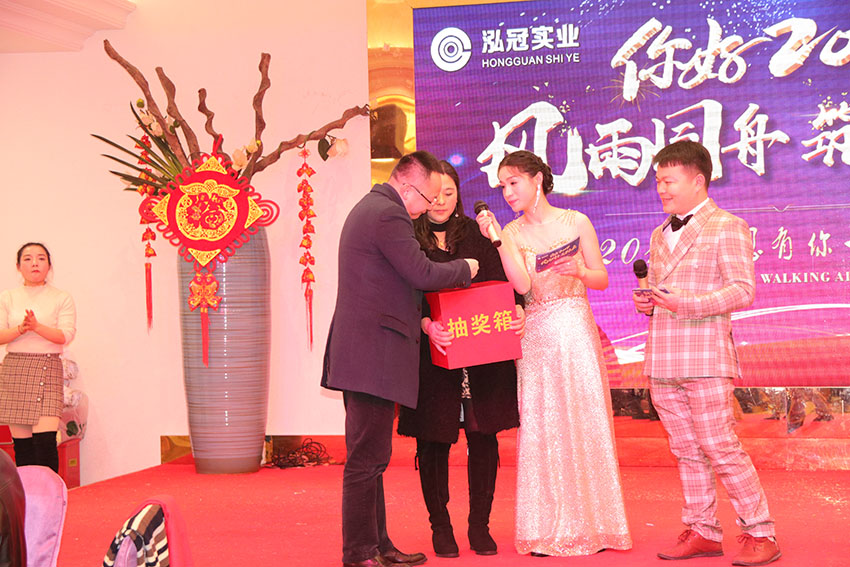 年會現場氣氛熱烈洋溢著歡聲笑語,董事長劉總首先作了2018年度年會致辭。在致辭中劉總總結和肯定了2017年所取得的優異成績,同時明確了公司2018年的經營規劃,鼓舞大家一同拼搏努力打造更好的泓冠。最后,劉總總結發表感言,感謝泓冠各位員工一年來的辛苦工作,表達了為泓冠未來發展的期許。領導的講話讓在座的每個人都心潮澎拜、斗志昂揚。大家紛紛表示將會同心同德、攜手并進,共同創造出“泓冠實業”更加燦爛輝煌的明天!